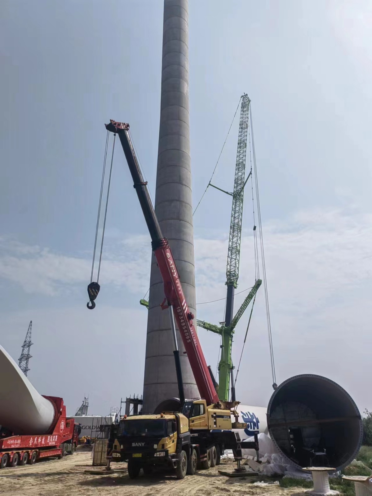在山西省運城市臨猗縣的一個100兆風電項目中,一臺由我司國六B發動機6R1500(OM473LA.6-57)驅動的2400噸全地面汽車起重機正在執行安裝作業。